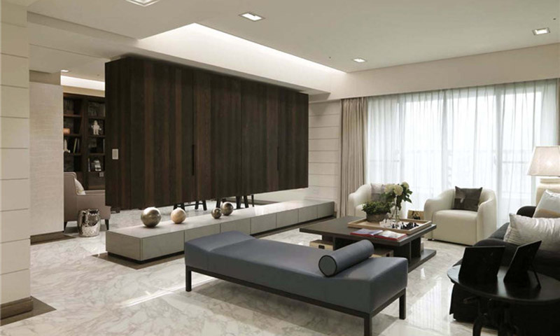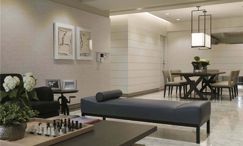 案例說明 本案客廳空間的設計不拘一格,手法大膽自由,將耀眼的橘色、高貴的天藍色融入空間中,用現(xiàn)代感十足的拼接地毯搭配古典韻味的藝術雕塑,展現(xiàn)出國際都會的夢幻色彩與超脫浮華的高雅氣質。